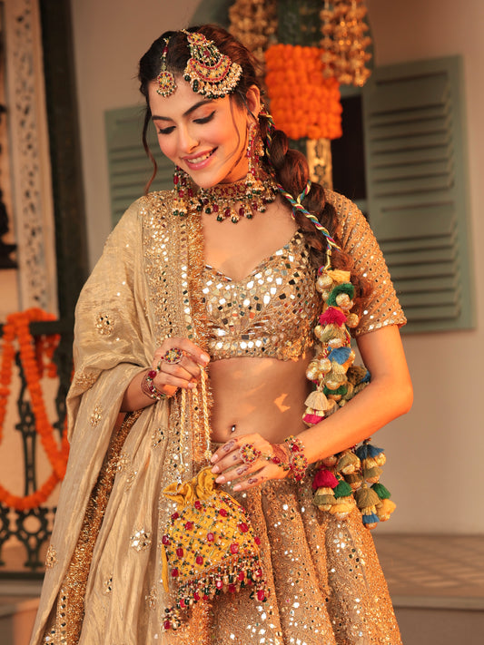 New ArrivalKaju Katli Cowrie Potli (Mini) - Gold