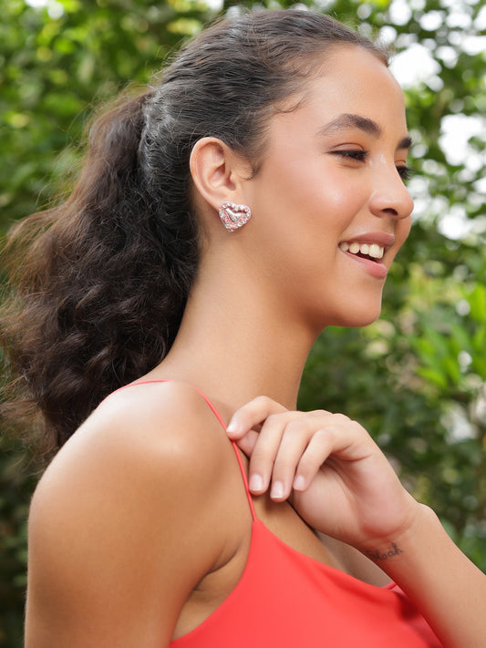 Sweetheart Sparkle Mini Stud Earrings - Pink