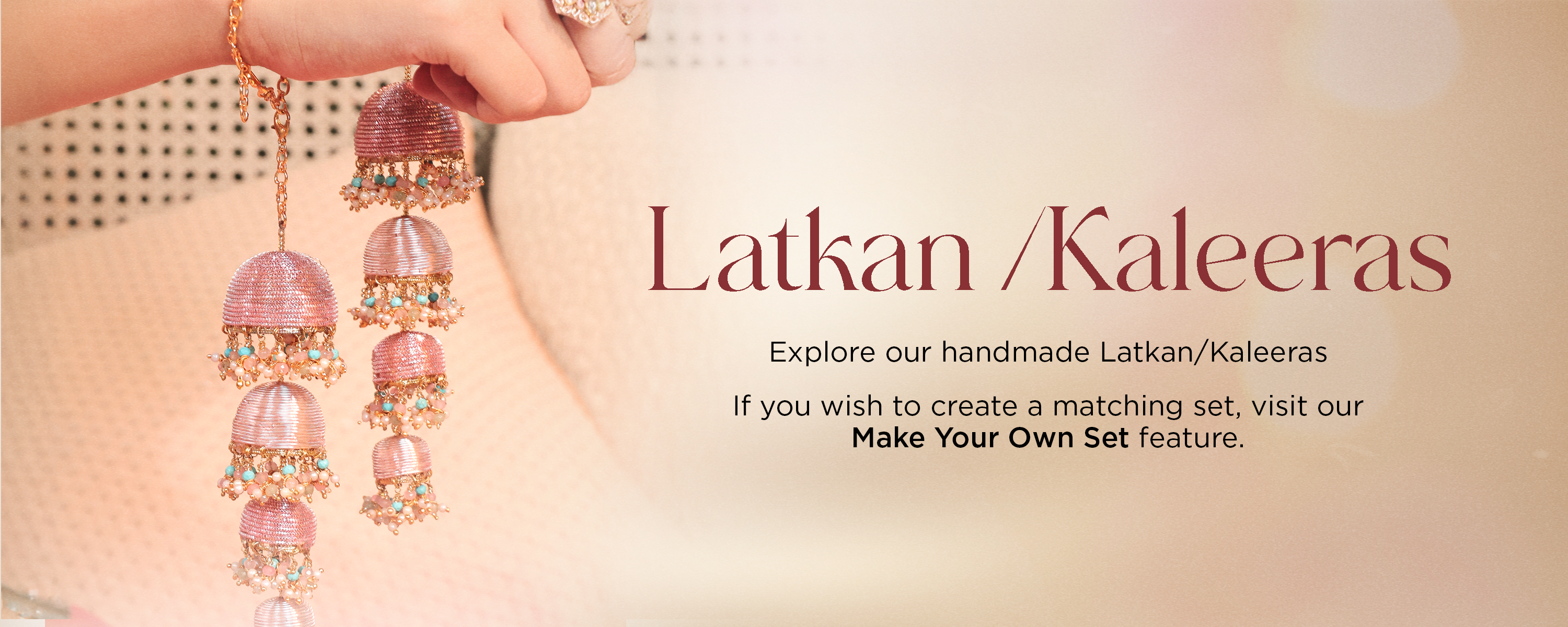Elevate your bridal look with Tonoto’s stunning Latkan Kaleeras, perfect for weddings and celebrations. Personalize your style with our 'Make Your Own Set' feature for a unique, one-of-a-kind touch!