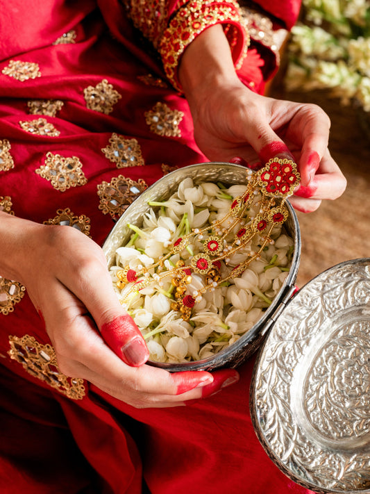 Inspired by the iconic red sindoor, adding the perfect touch to your Karwachauth glow.