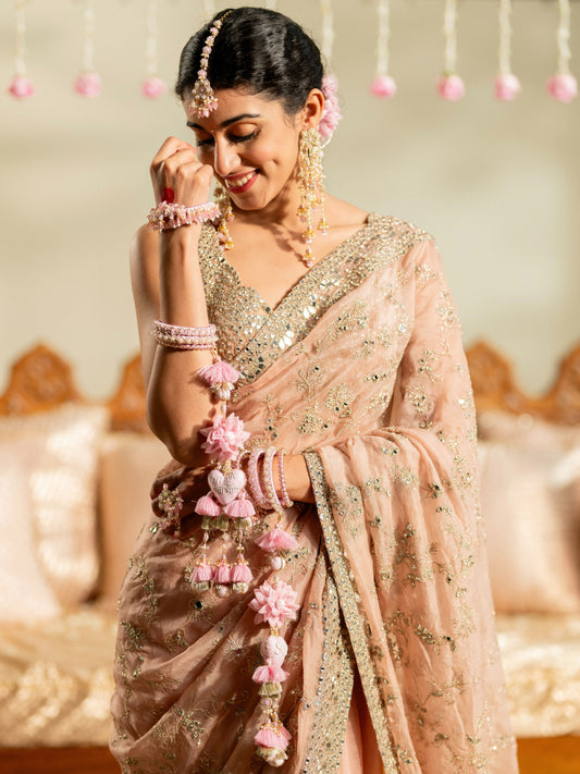 Inspired by the romantic glow of a moonlit night, the Chand Theme in soft pinks and ivory celebrates eternal femininity