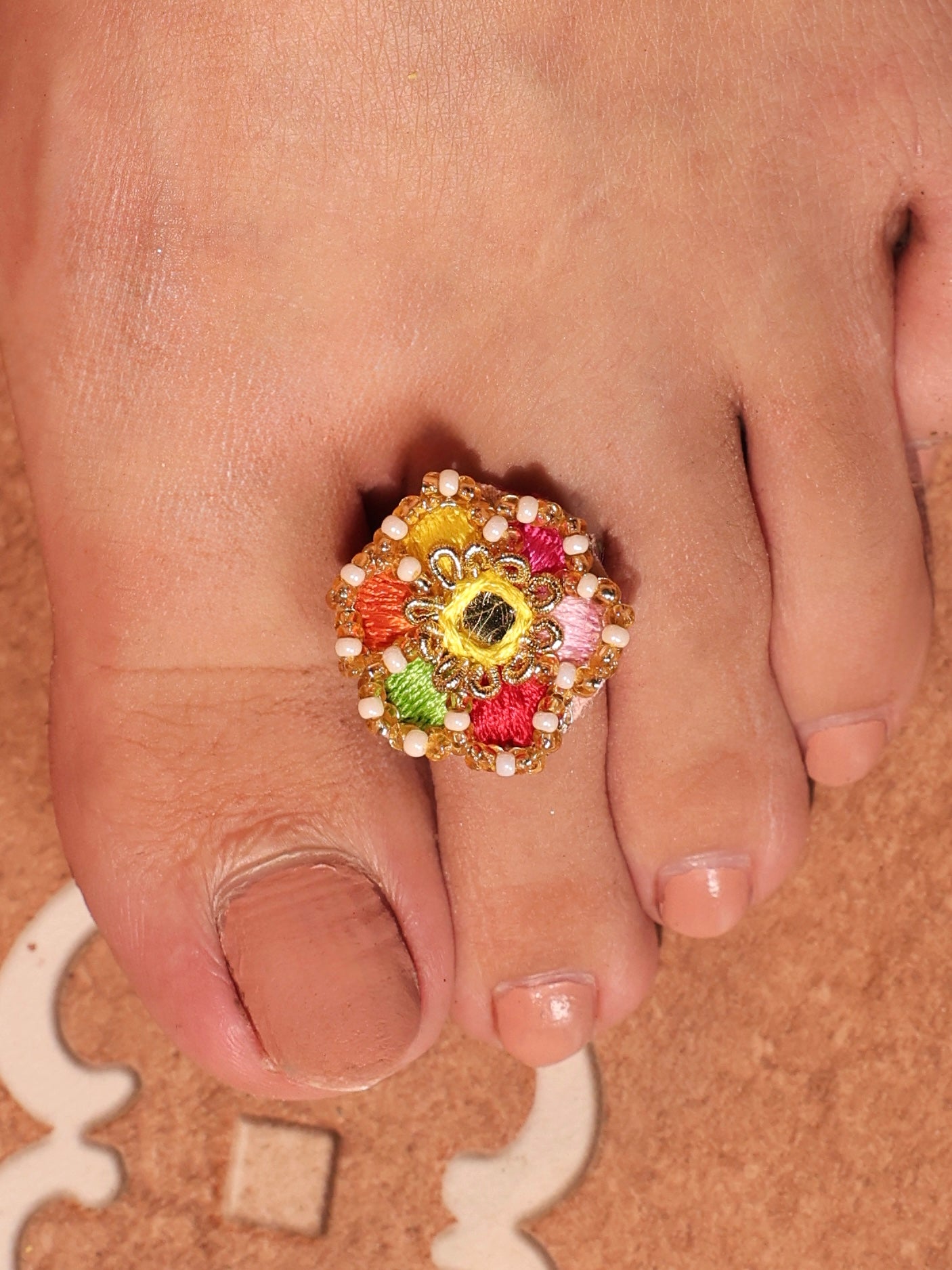 Each piece is meticulously crafted using intricate hand embroidery techniques on a textile base.