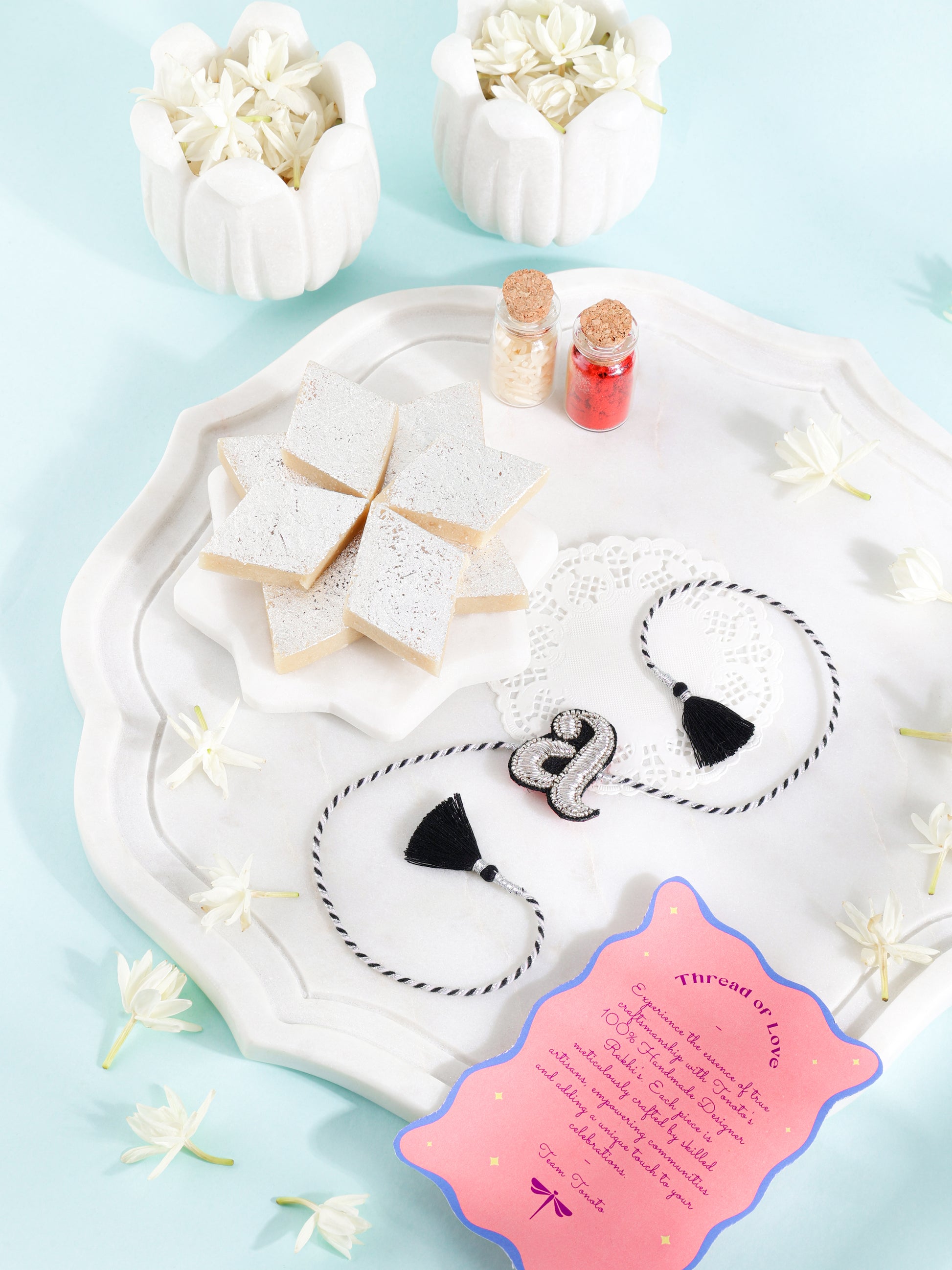 Note: Roli & chawal bottle, Rakhi card with envelope, chocolates, and gift box can be added for an additional charge.