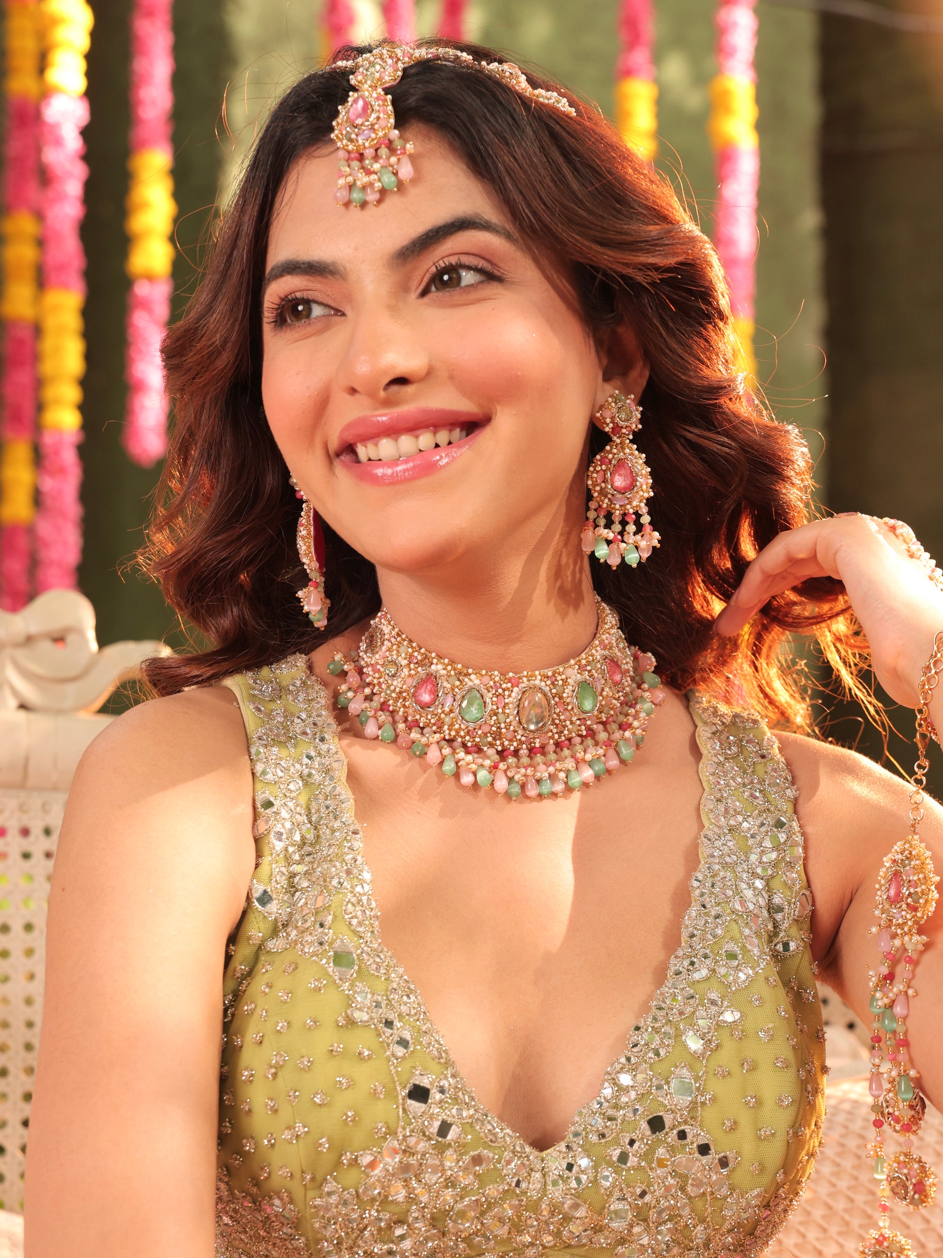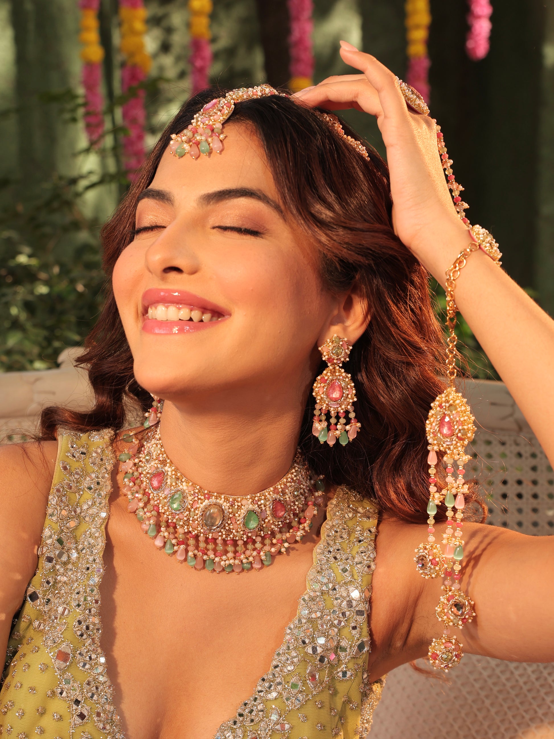 "The jewellery set fit like a dream on my haldi outfit. Loved the fact that it was super light and easy to carry! Didn't even feel I was wearing jewellery. It's intricate and got me many many compliments!"