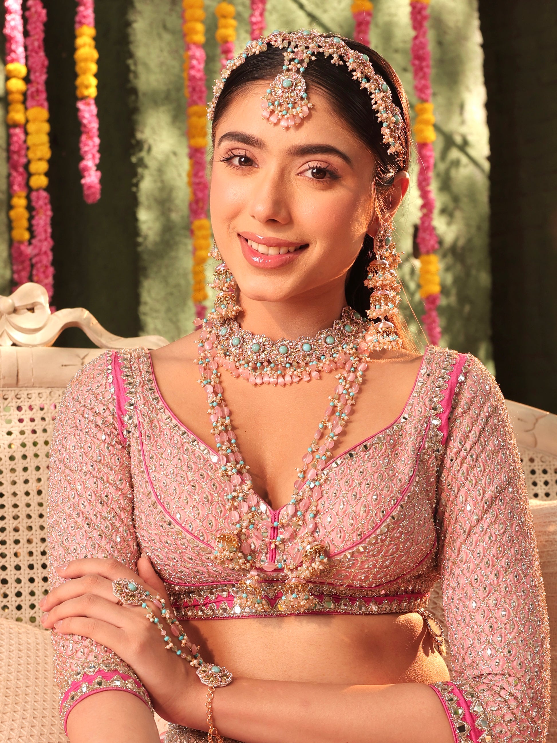 "The jewellery set fit like a dream on my haldi outfit. Loved the fact that it was super light and easy to carry! Didn't even feel I was wearing jewellery. It's intricate and got me many many compliments!"
