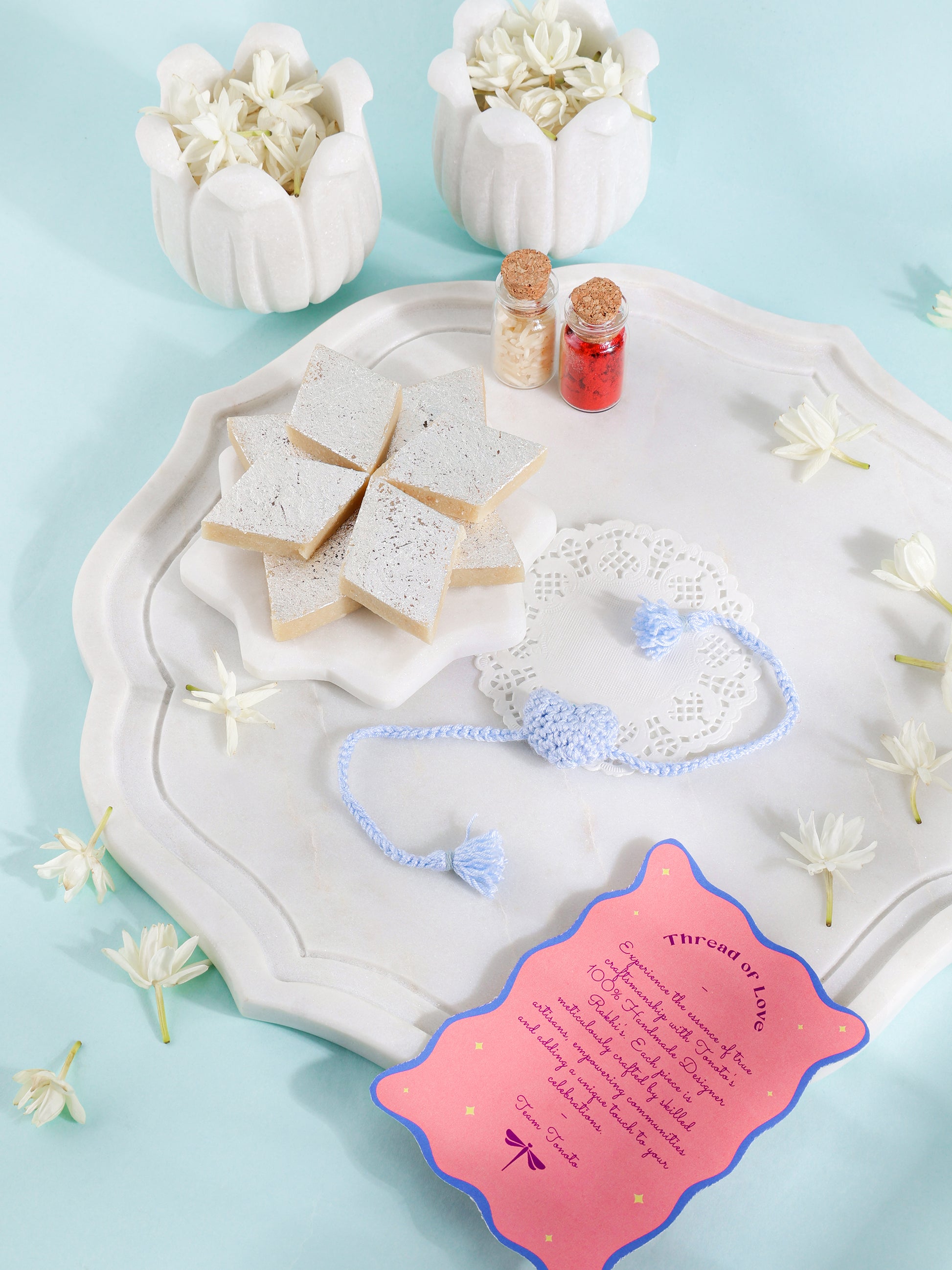 Ensure your baby's first Raksha Bandhan is safe and special with our Baby Rakhi. Crafted using soft crochet techniques and baby-safe yarn, these Rakhis are chew-safe and gentle on delicate skin. Our baby-friendly Rakhis are designed with your little one’s safety in mind, making them perfect for the tiniest members of your family