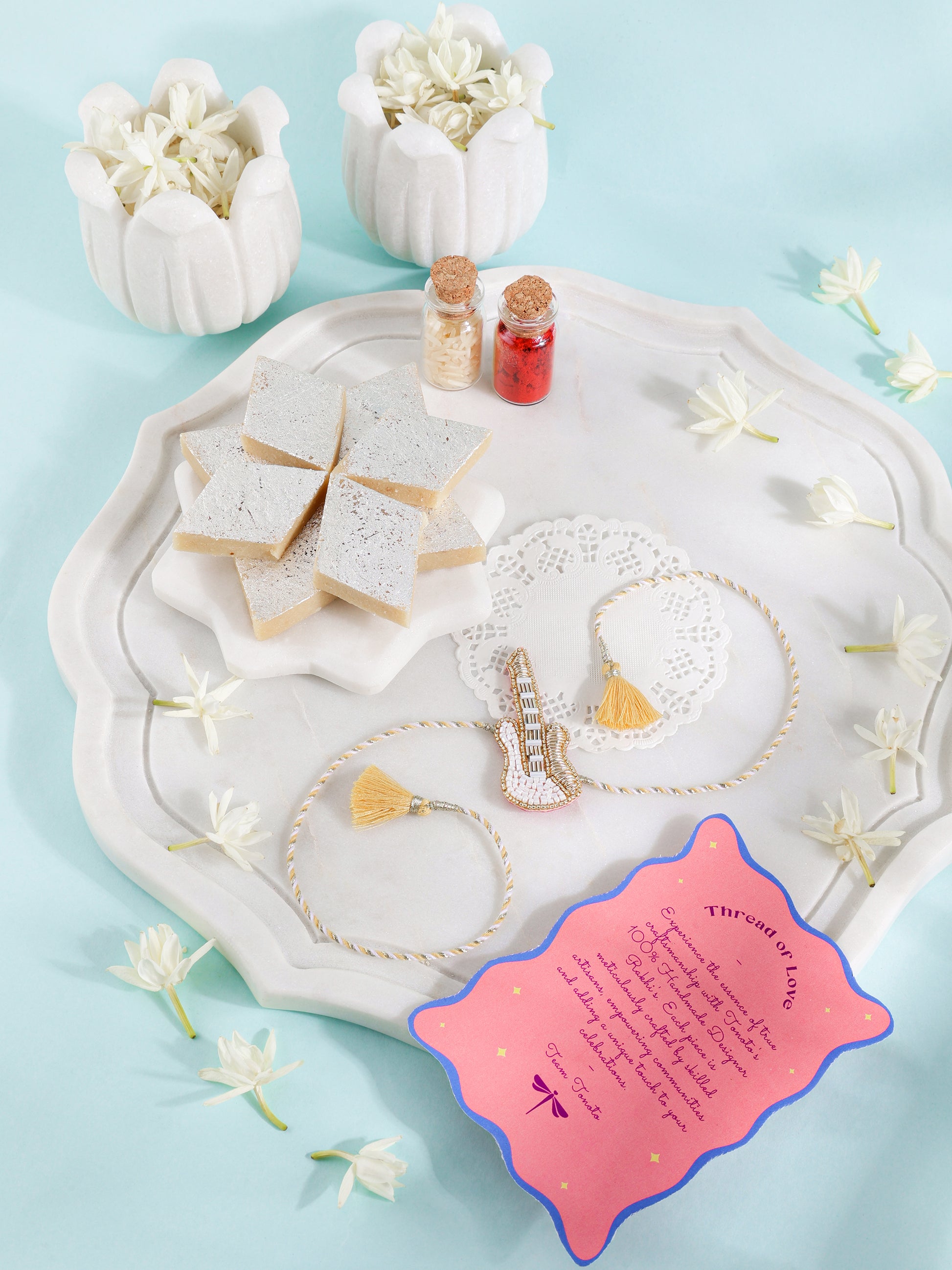 Note: Roli & chawal bottle, Rakhi card with envelope, chocolates, and gift box can be added for an additional charge.