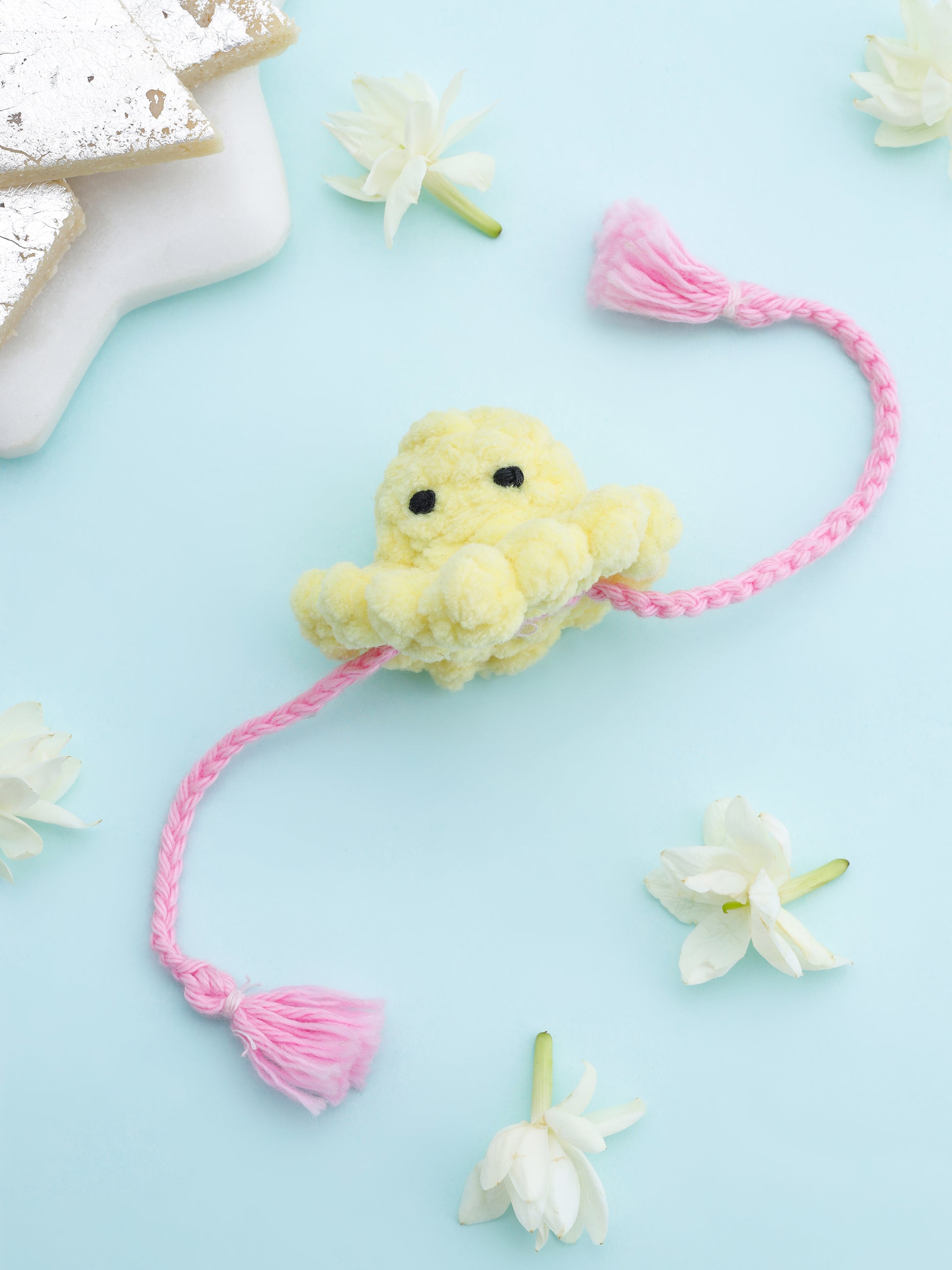 Ensure your baby's first Raksha Bandhan is safe and special with our Baby Rakhi. Crafted using soft crochet techniques and baby-safe yarn, these Rakhis are chew-safe and gentle on delicate skin. Our baby-friendly Rakhis are designed with your little one’s safety in mind, making them perfect for the tiniest members of your family