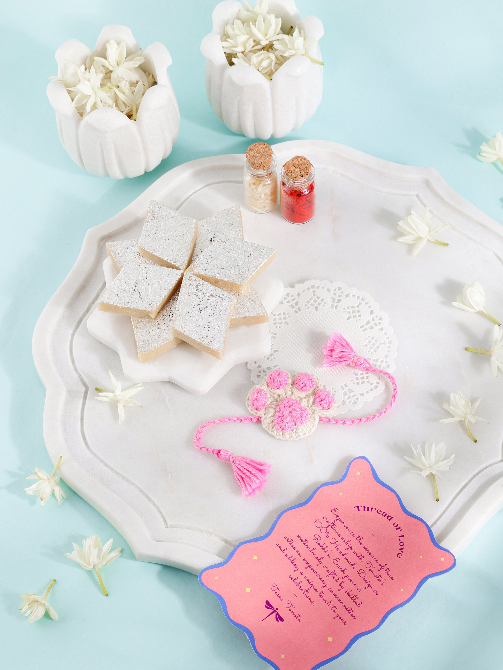 Celebrate Raksha Bandhan with your furry family members using our Pet Rakhi. Just like our Baby Rakhi, these are made with pet-safe materials and are gentle enough for your pets. Each Rakhi is designed to be comfortable and secure, ensuring that your pet can join in the festivities safely and stylishly.