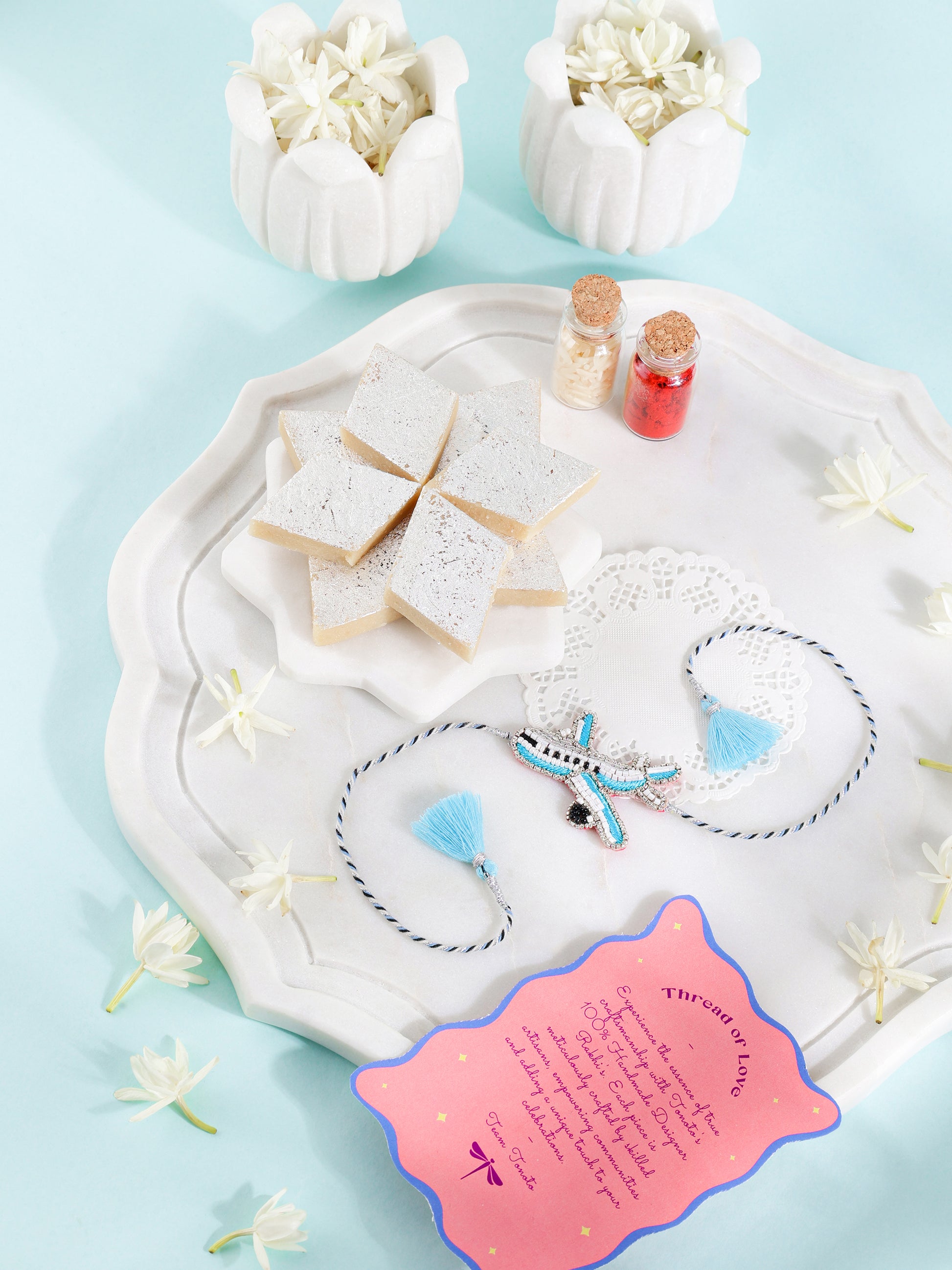Note: Roli & chawal bottle, Rakhi card with envelope, chocolates, and gift box can be added for an additional charge.
