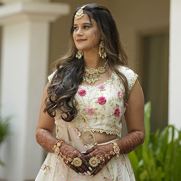 "I enjoyed wearing it and the number of compliments I received was another thing. I appreciate how the team customised it based on my lehenga colour and made it as per my requirements. P.S.: Can't wait for more weddings in the family so I can buy a yellow or a colourful set from you again!"