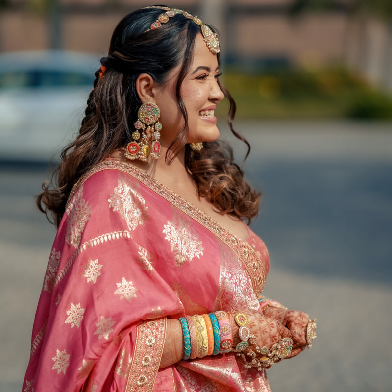 "The jewellery set fit like a dream on my haldi outfit. Loved the fact that it was super light and easy to carry! Didn't even feel I was wearing jewellery. It's intricate and got me many many compliments!"